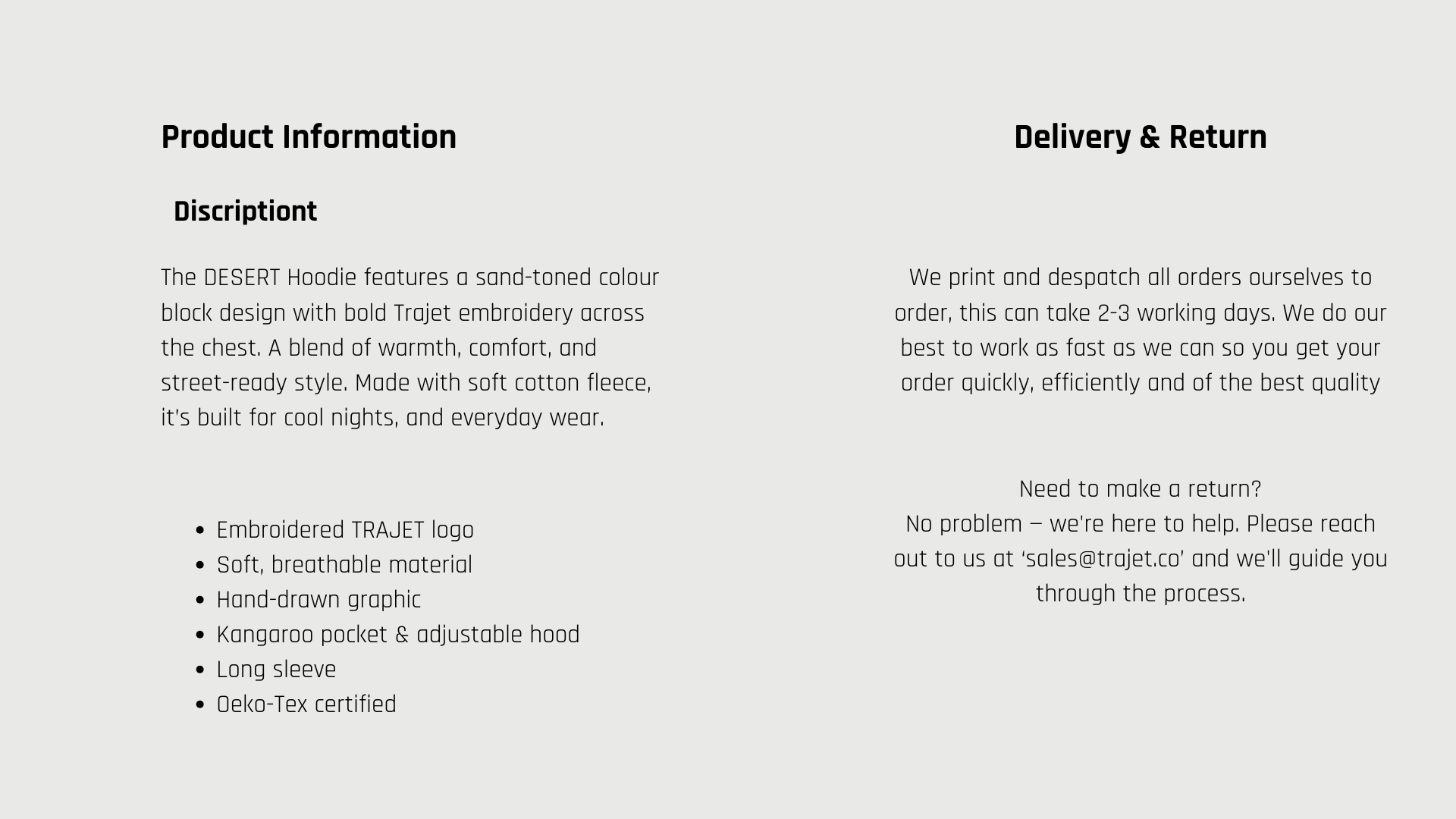 Neutral, earthy tones, bold Trajet branding, and everyday comfort for riders who move between road and city.