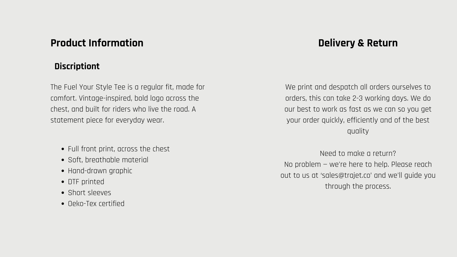 Featuring Trajet’s vintage - inspired logo across the chest, this brings rugged style, comfort, and attitude to every ride.