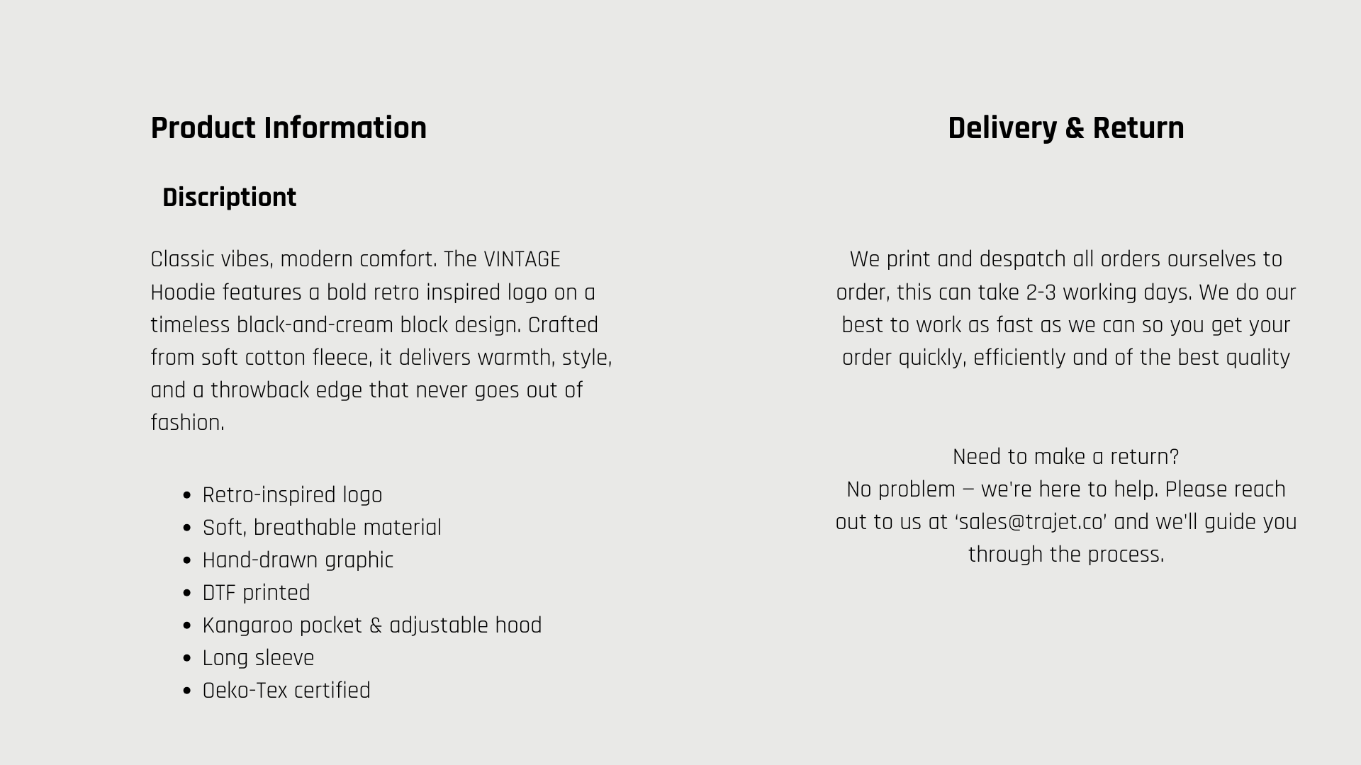 Vintage - inspired design, bold Trajet print, and premium comfort. A timeless layer for everyday style.
